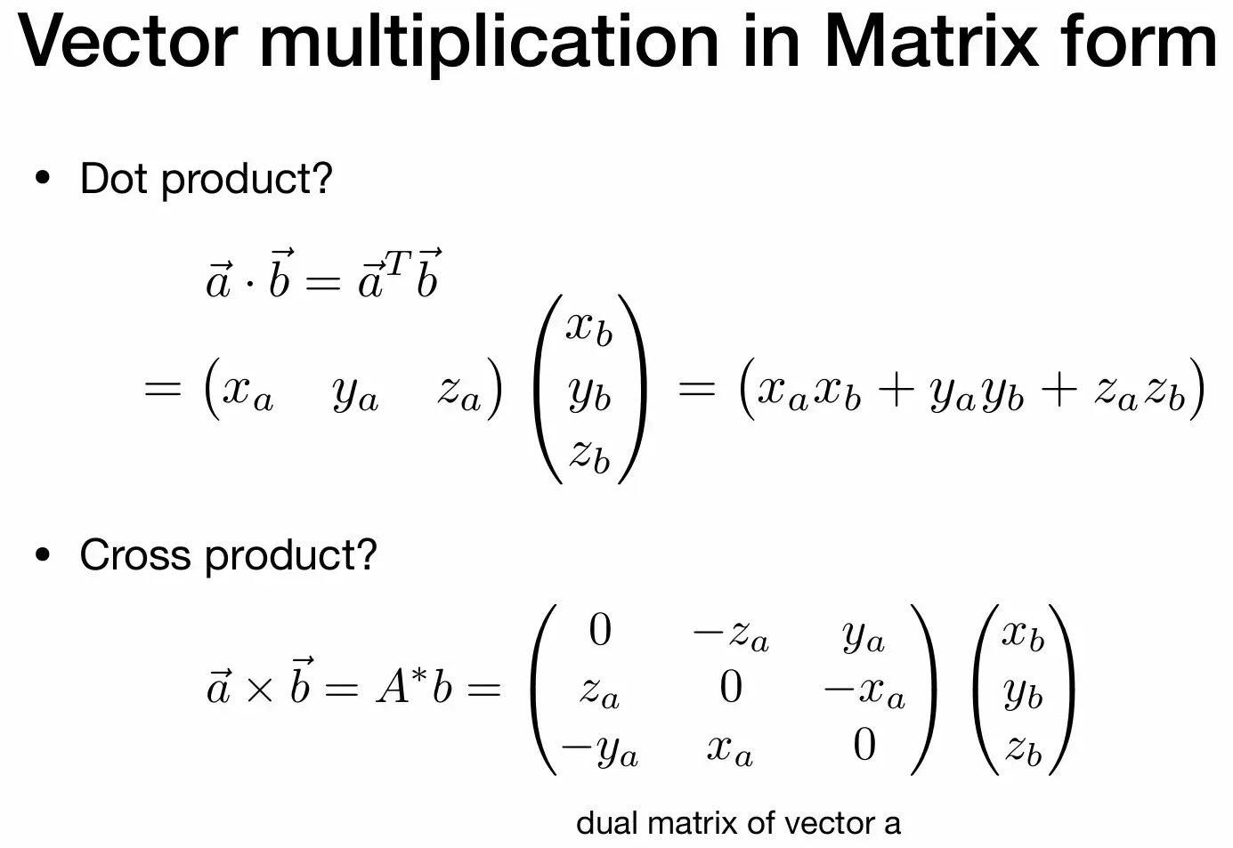 - \(\hat{a}=\vec{a}/||\vec{a}||\)