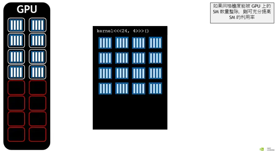 __globalvoidkernel(int*a,intN){intindexWithinTheGrid=threadIdx.x+blockIdx.x*blockDim.x;intgridStride=gridDim.x*blockDim.x;for(inti=indexWithinTheGrid;i<N;i+=gridStride){// do work on a[i];}}